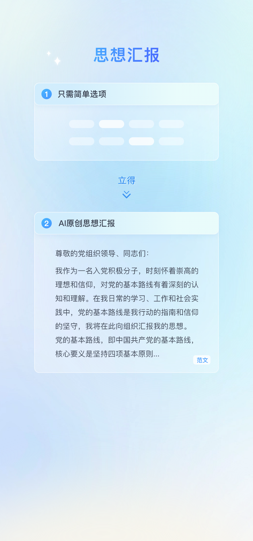 只需选择主题偏好、快速生成思想汇报